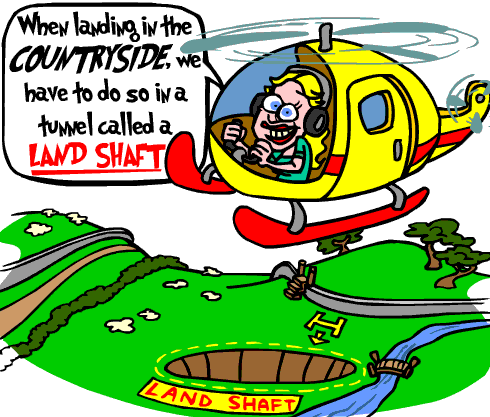 ... imagine in the countryside is a mining SHAFT where Cheryl Ladd (f) (formerly of Charlie’s Angels) is LANDing her helicopter - she calls it a LAND SHAFT!